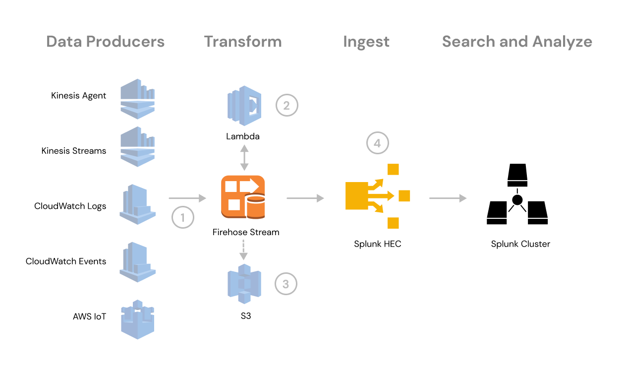 Traditional vendors, like Splunk and Sumo, rely on customer to configure ‘'push'' pipelines. However, as the number of cloud services and application components that generate logging data increases, they often have missing or incomplete data. Another key problem with traditional “push" approach is that it requires a manual action. See step 1: