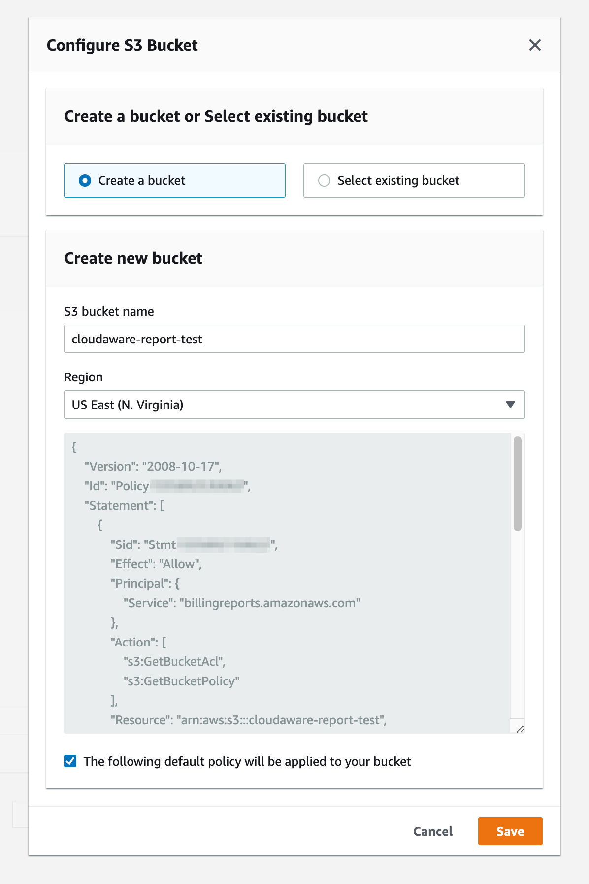 3. Configure the S3 Bucket the report should be placed in and click Save: