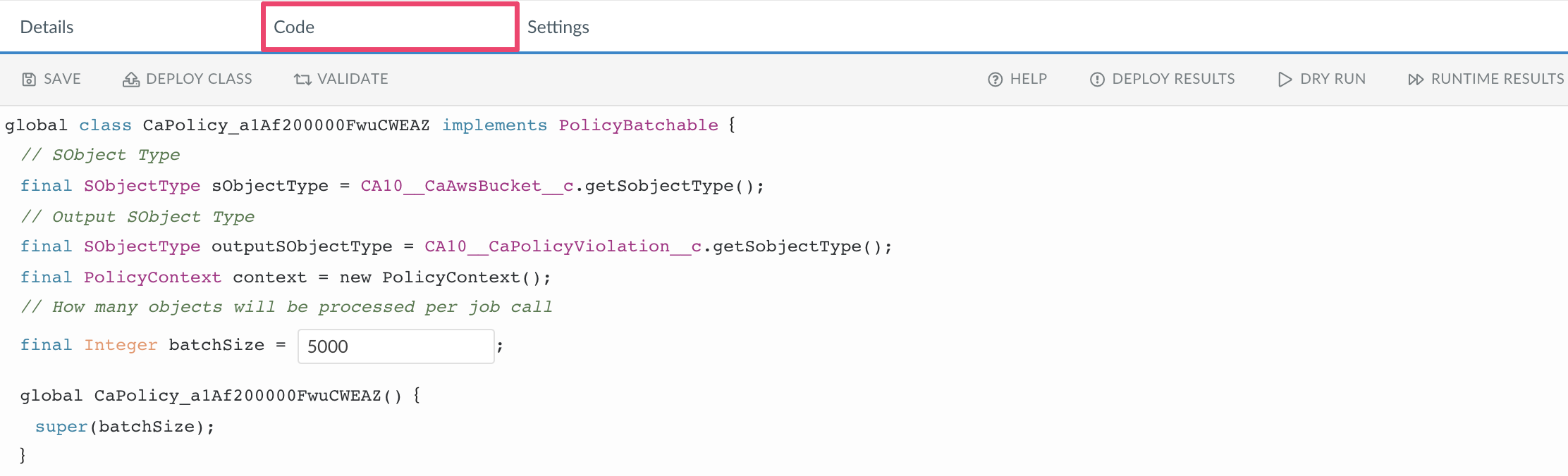Cloudaware provides you with a Salesforce version of Java programming language that allows to adjust any of the existing policies to fit your needs. The article guides though steps required for creation of a custom policy.