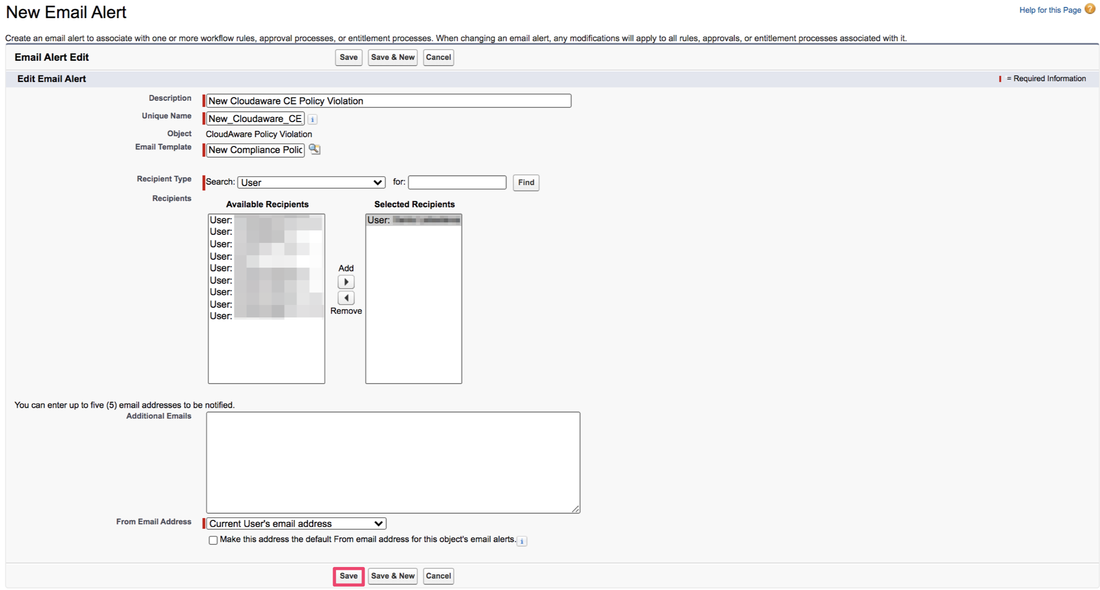 5.2. Add users from the list of Available Recipients and additional email addresses if necessary. Click Save.