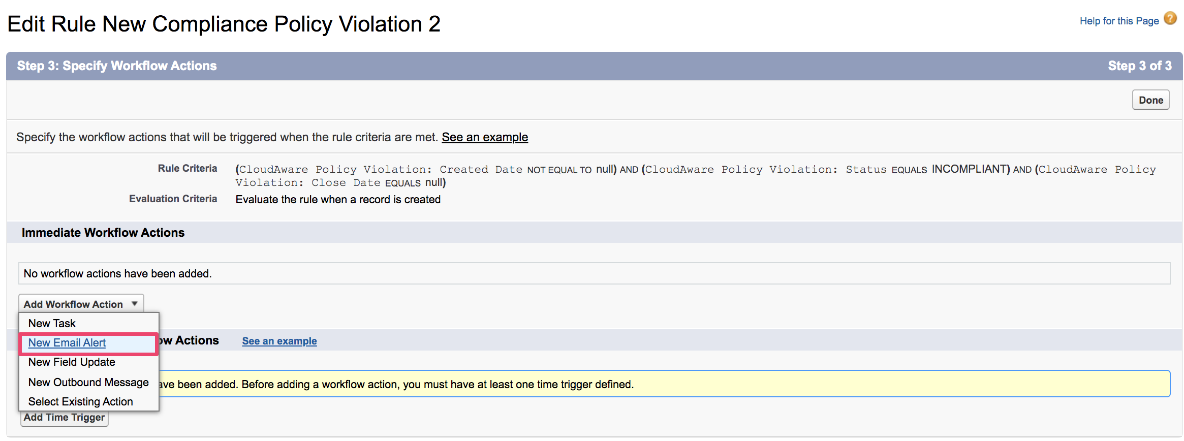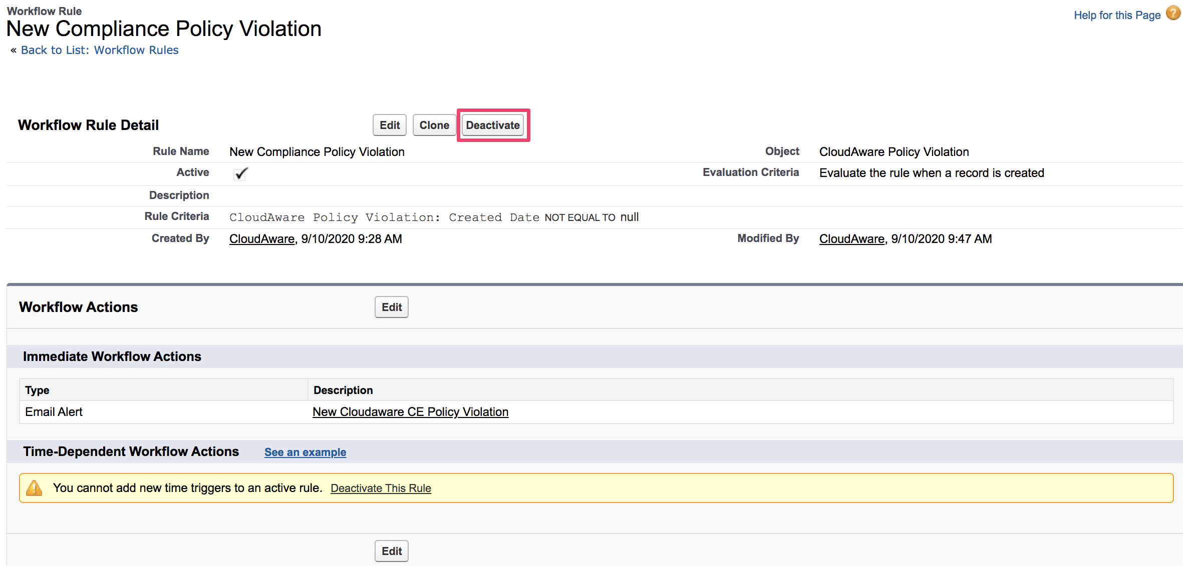 If the workflow rule results in generation of a high volume of alerts, deactivate it to reconsider and edit the criteria.