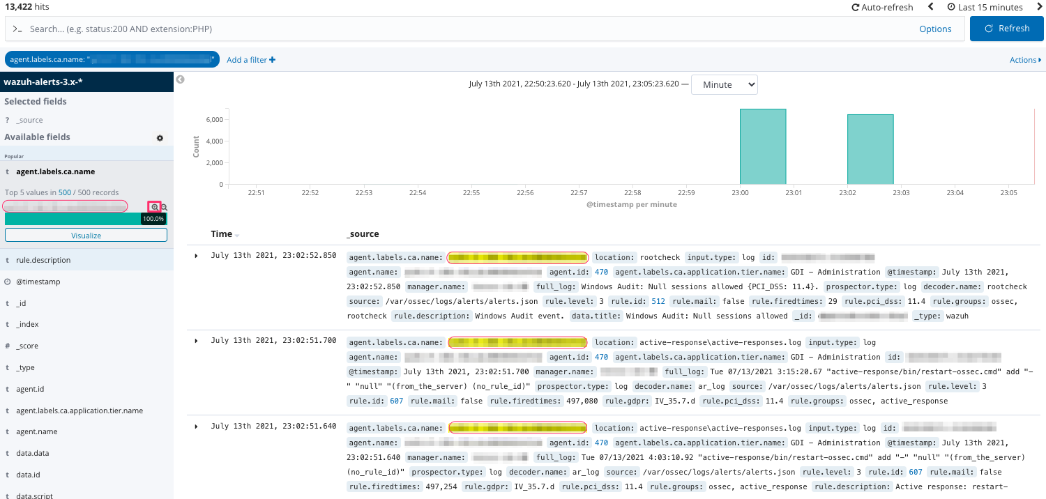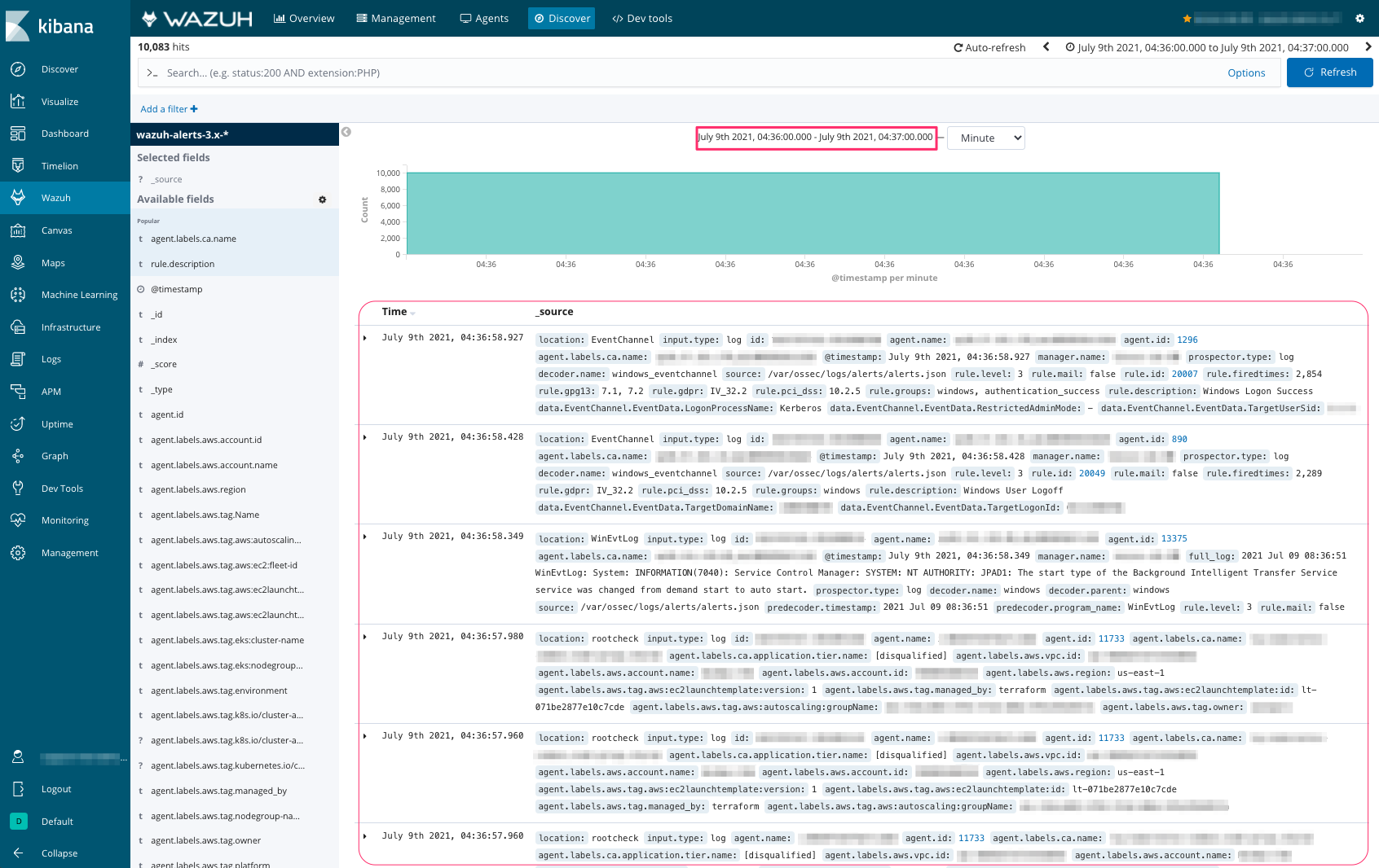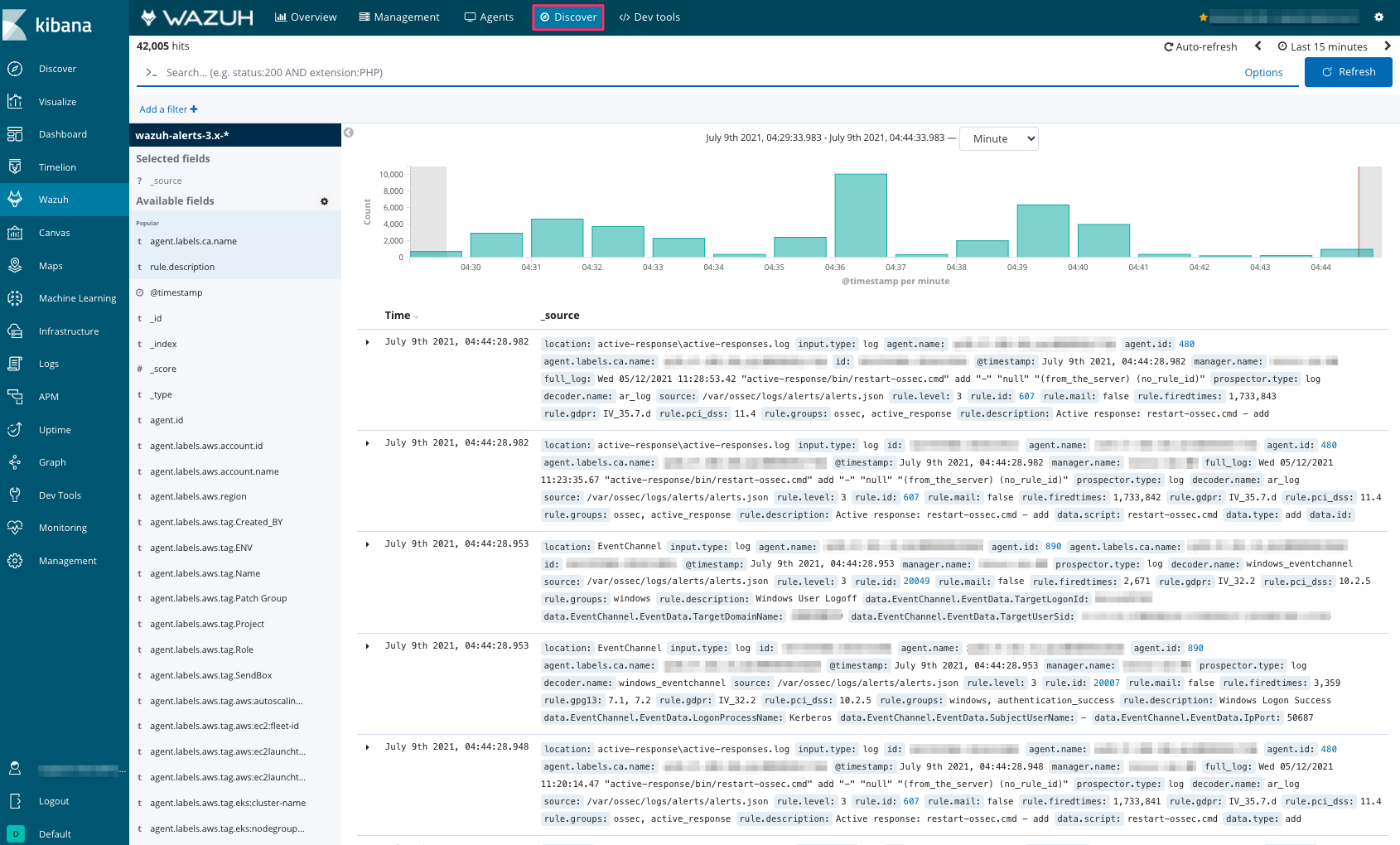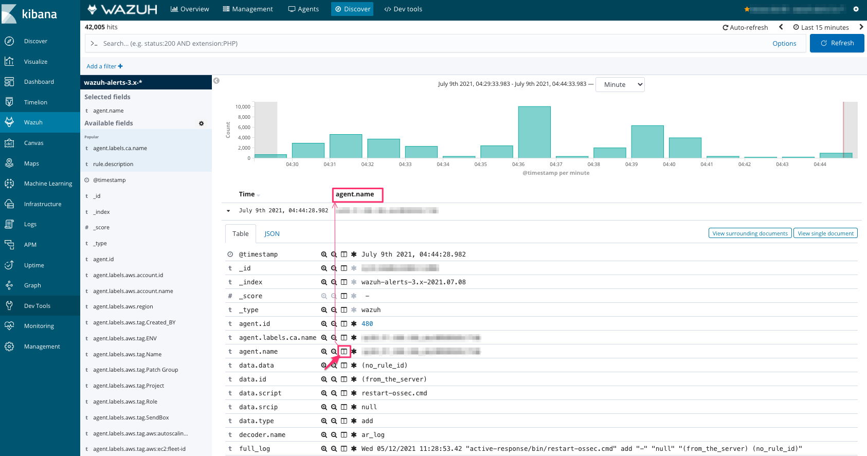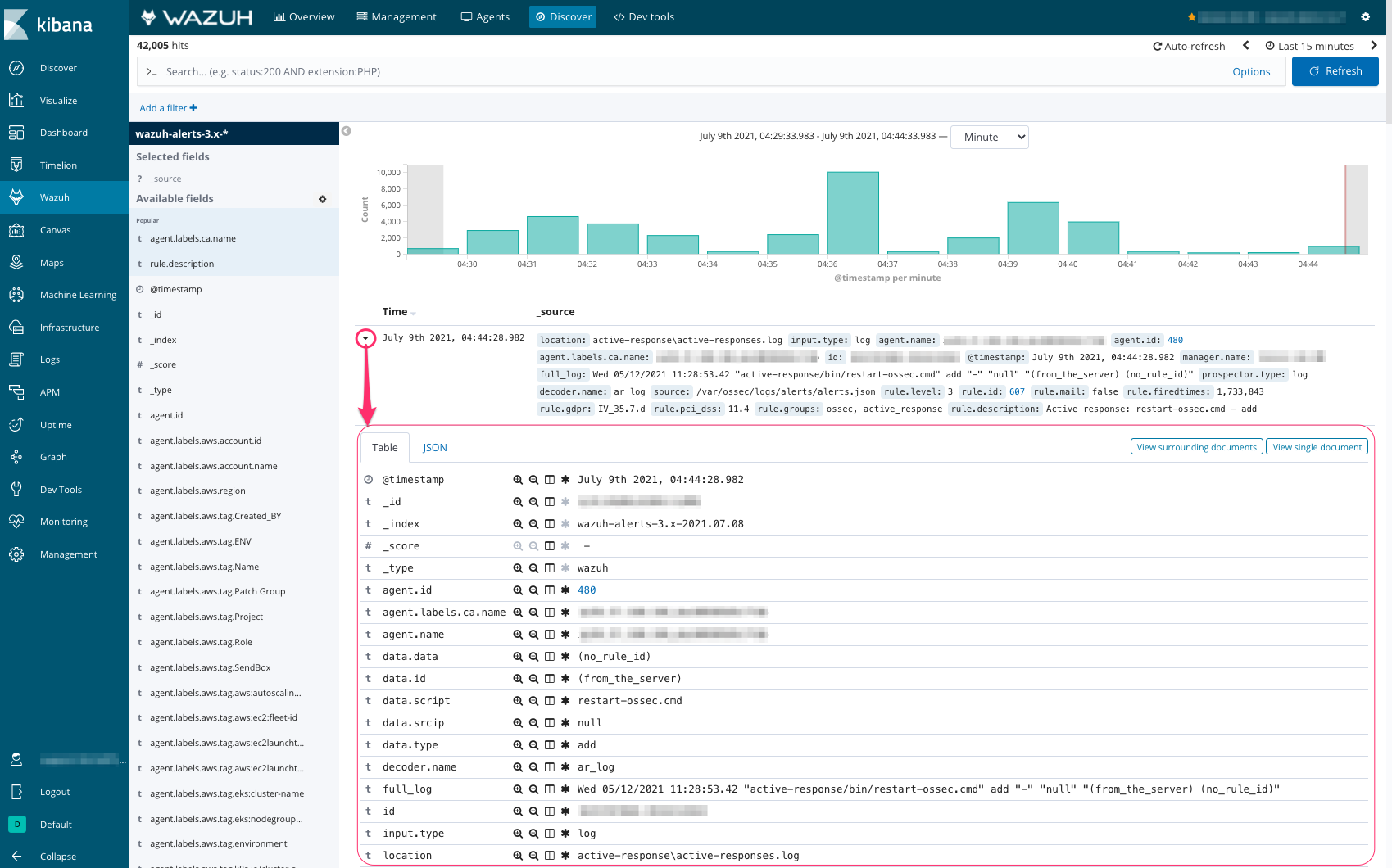 Go to the tab 'Discover' to open events row data for a more profound investigation.