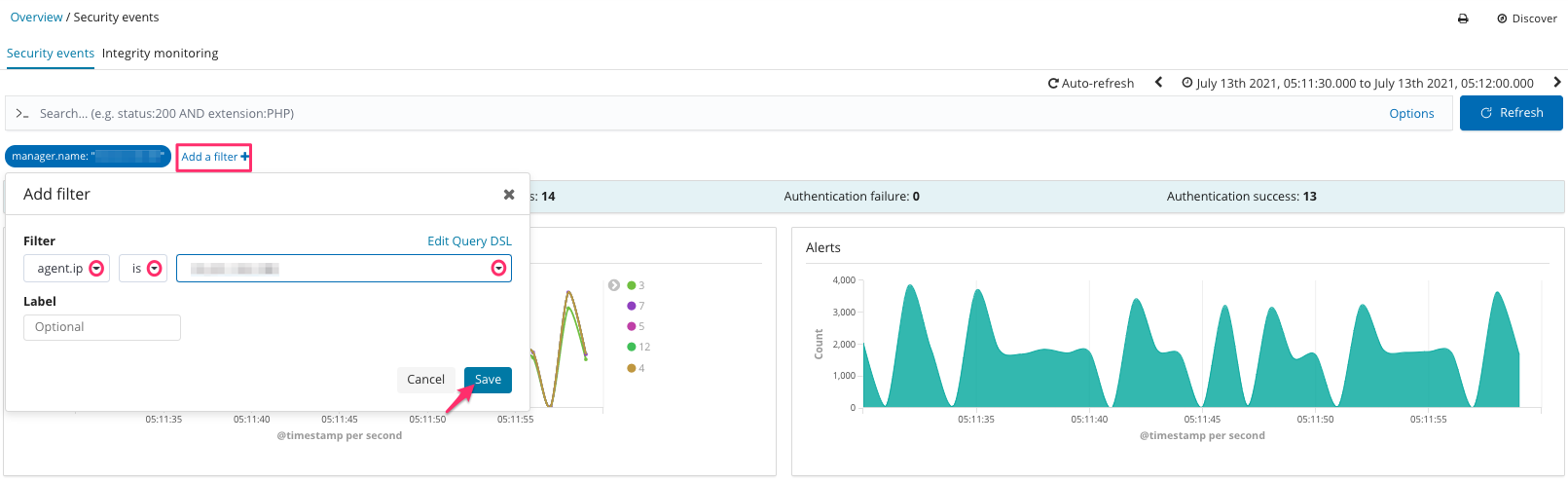 The chart displays the count of alerts over time.