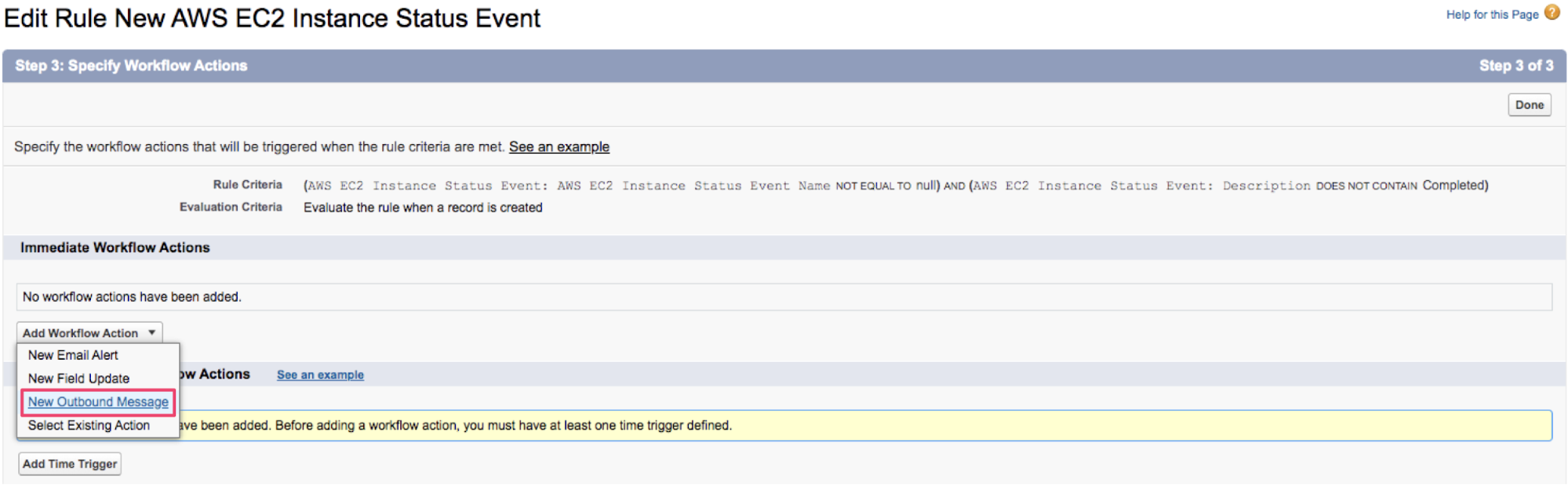 Use case: Trigger a PagerDuty incident whenever an AWS EC2 instance status changes. To do this, create a workflow rule for the 'AWS EC2 Instance Status Event' object.