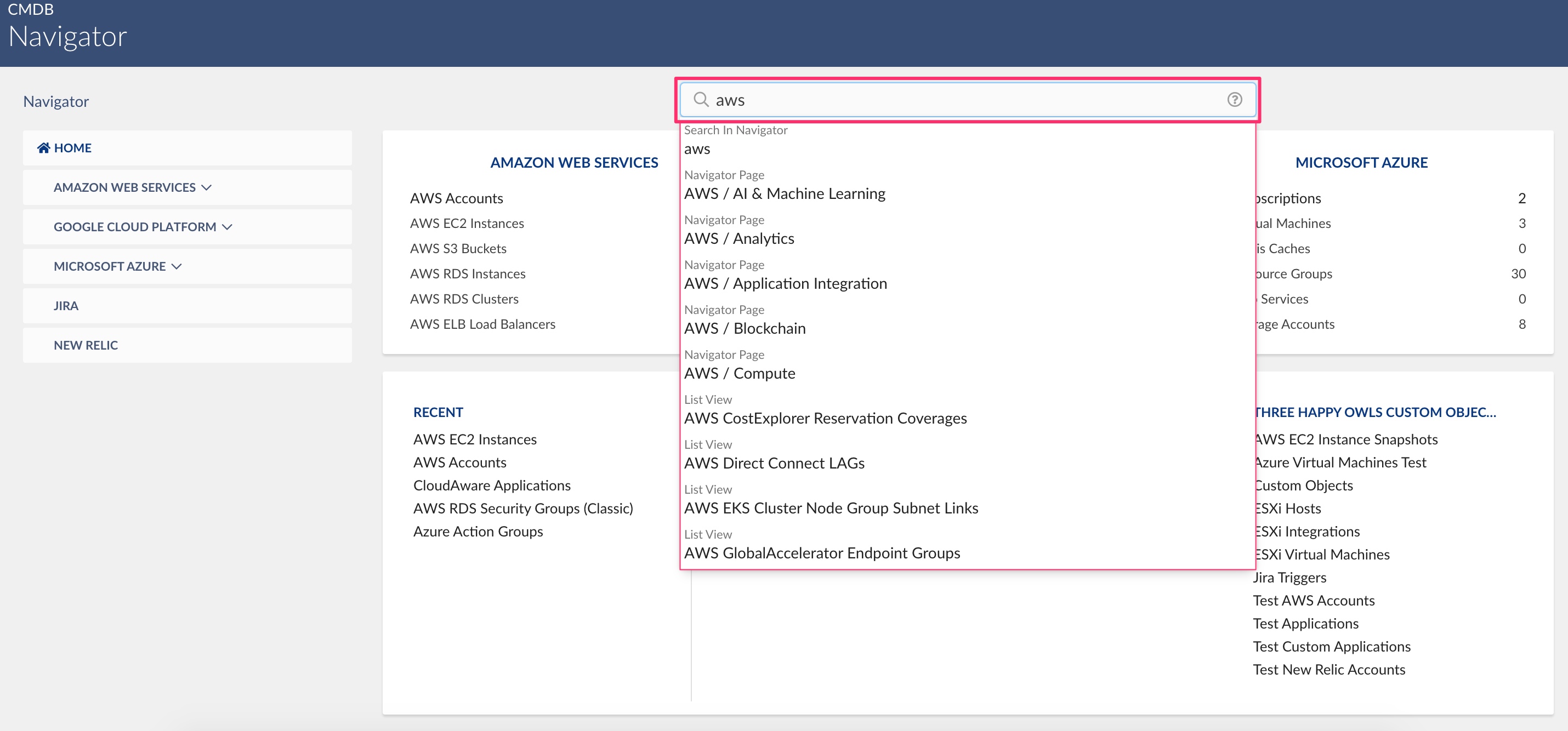 Cloudaware CMDB Navigator is powerful navigation and search tool designed for accessing data within Cloudaware CMDB.