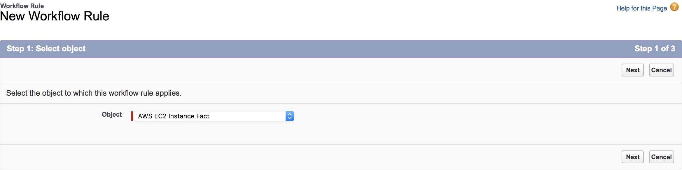 2. Select 'AWS EC2 Instance Fact' in the list of objects list and click Next: