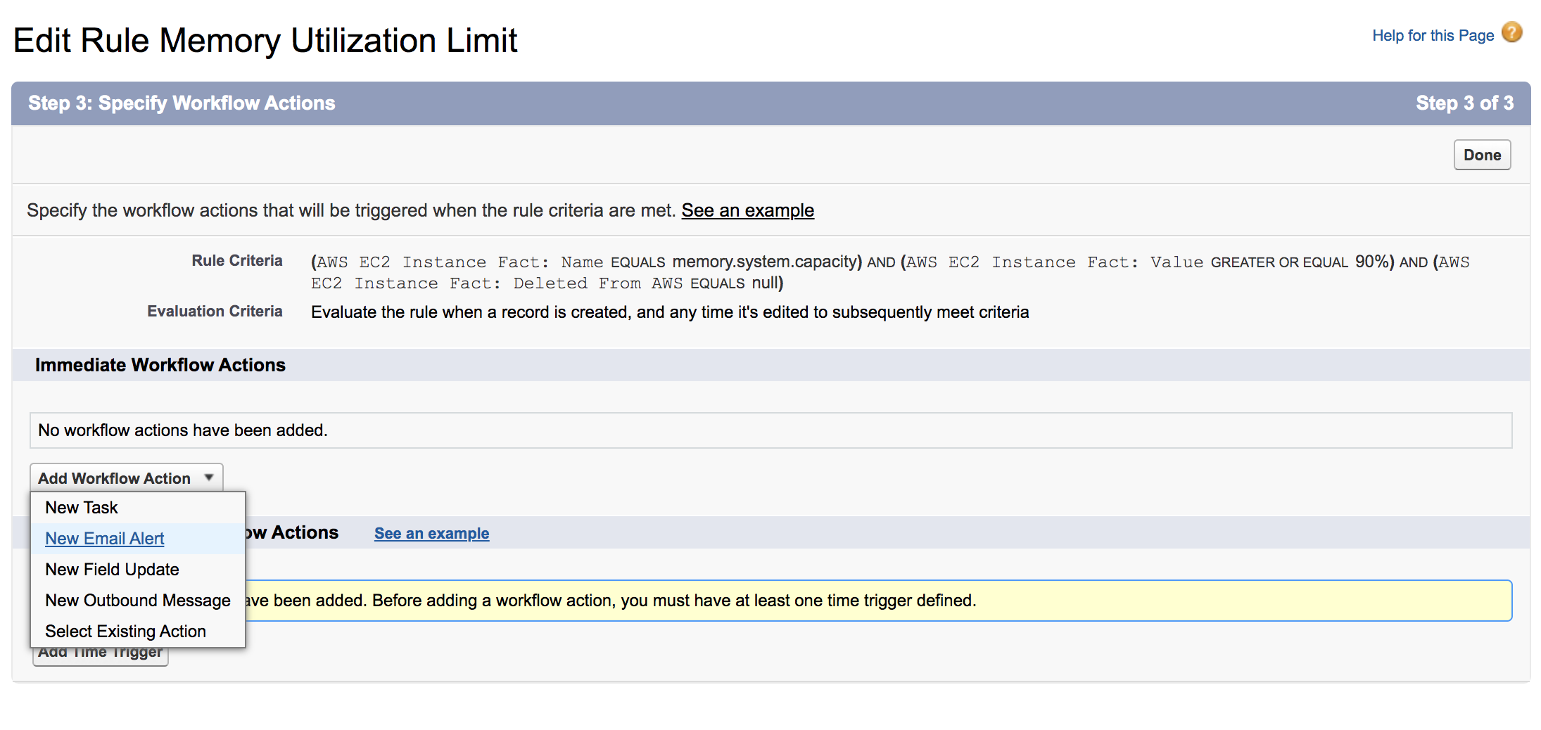 Use case: you would like to be warned about a memory utilization limit exceeded on an instance.